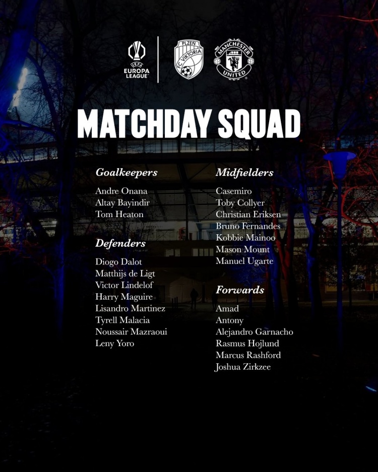 12月12日訊 北京時間明天凌晨1點45分,曼聯(lián)將在歐聯(lián)杯第6輪比賽中客場對陣比爾森勝利,曼聯(lián)公布了此役的球員名單,拉什福德、霍伊倫、加納喬在列,林德洛夫、科利爾回歸。