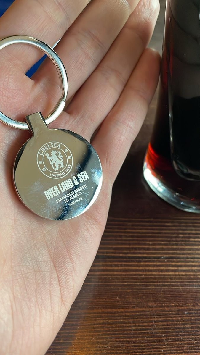 此外,哈薩克斯坦距離遙遠(yuǎn),從倫敦飛到阿拉木圖距離3485英里(約5608.56公里)。為此,俱樂部特別為勇敢隨隊(duì)出征的忠實(shí)球迷們準(zhǔn)備了鑰匙扣紀(jì)念品,銘牌上印有切爾西俱樂部隊(duì)徽,并寫有“越過土地與大海,斯坦福橋到阿拉木圖,3485英里”字樣。