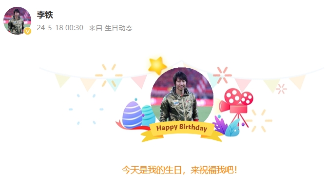 李鐵最新一條微博為今年5月18日微博自動(dòng)發(fā)的生日祝福微博。