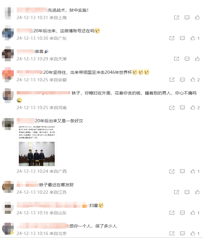 - 一審被判20年!李鐵最新微博下評(píng)論:真成牢鐵了!20年后再見(jiàn)