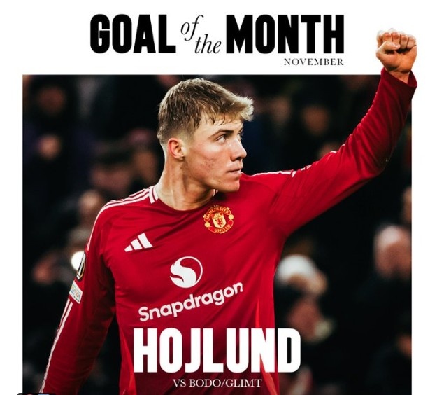 在歐聯(lián)曼聯(lián)3-2博德閃耀的比賽中,霍伊倫在比賽第45分鐘、第50分鐘各入一球,他的第一粒進(jìn)球,在禁區(qū)內(nèi)停球后直接射門得分當(dāng)選曼聯(lián)11月最佳進(jìn)球。