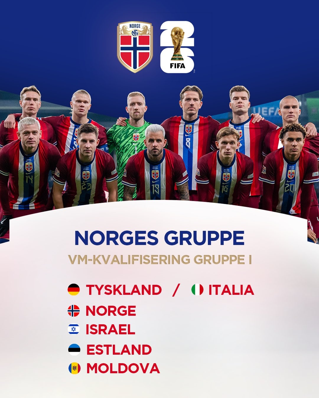 2026年世界杯歐洲區(qū)預(yù)選賽抽簽分組,挪威的同組對(duì)手有以色列、愛(ài)沙尼亞、摩爾多瓦,以及歐國(guó)聯(lián)1/4決賽德國(guó)vs意大利的敗者。