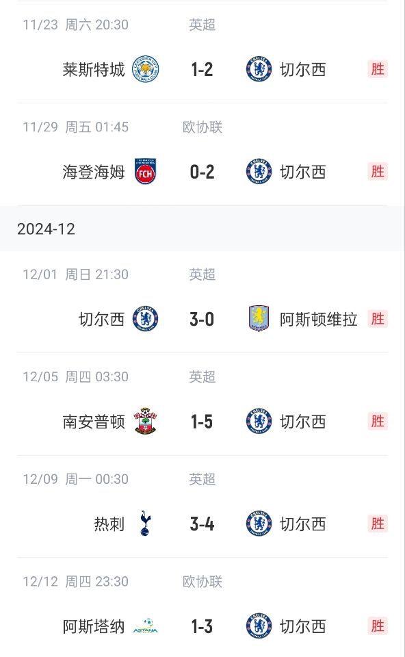 切爾西本賽季狀態(tài)出色,目前已取得各項賽事6連勝,在歐協(xié)排名榜首,英超高居第二。