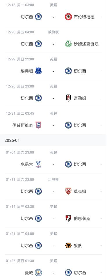 接下來的9場比賽,切爾西的對手幾乎沒有強隊,直到明年1月26日,他們才會去到客場挑戰(zhàn)曼城。